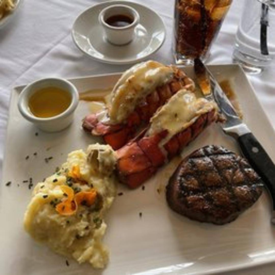 A succulent 7-ounce lobster tail, expertly prepared to perfection, showcasing its sweet, tender meat. This exquisite seafood delicacy is typically served with drawn butter, offering a luxurious dining experience.