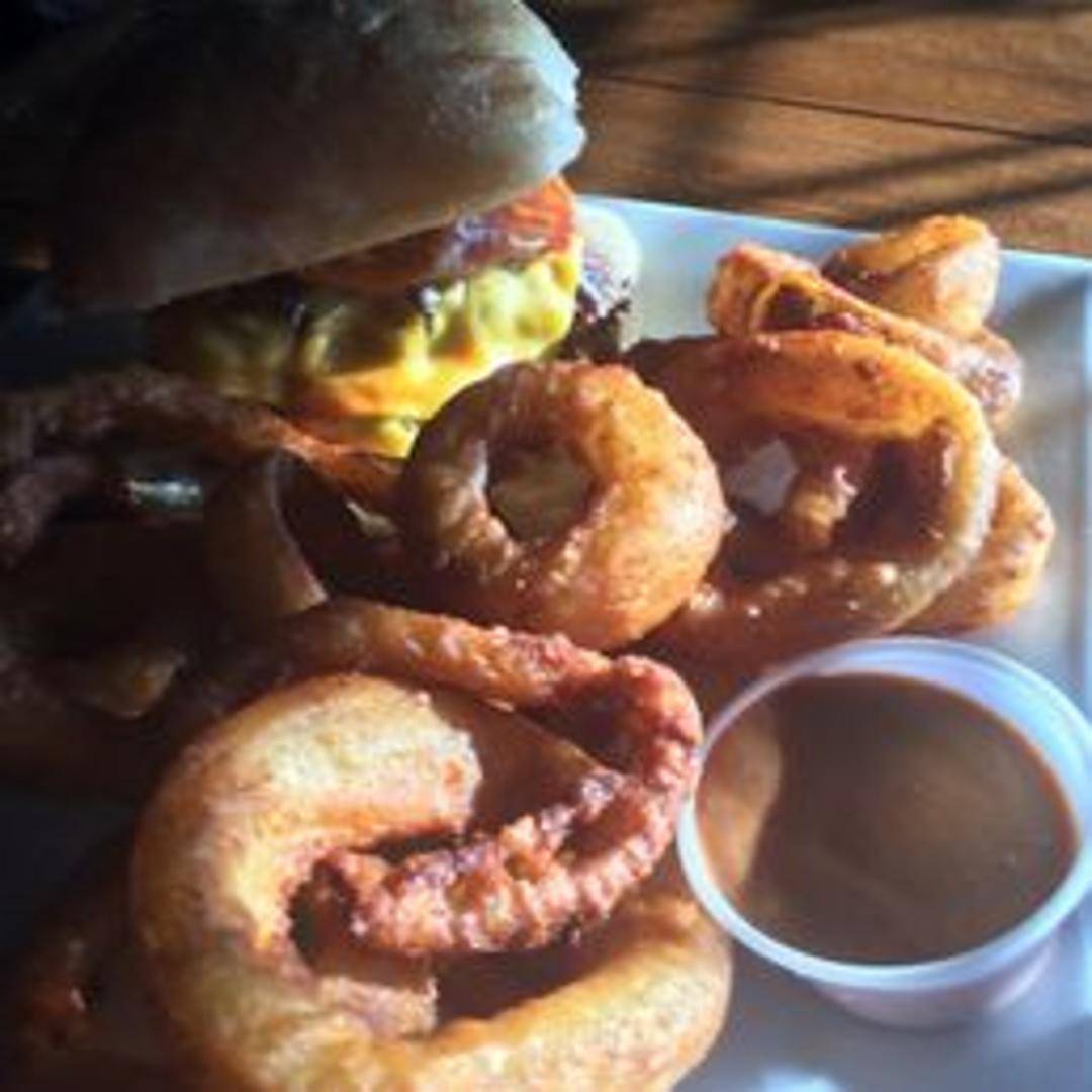 A juicy, seasoned beef patty grilled to perfection and smothered with caramelized onions and melted Swiss cheese between two slices of buttery, grilled rye bread. Served with your choice of side.