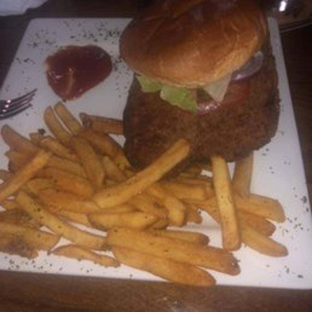 A tender, breaded and deep-fried pork cutlet served on a toasted bun with your choice of toppings, such as lettuce, tomato, onion, pickles, and condiments. Served with your choice of side.