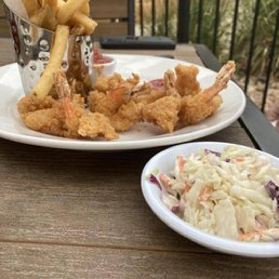 Crispy, golden-brown shrimp battered in a light beer batter. Served with cocktail sauce and your choice of two sides.
