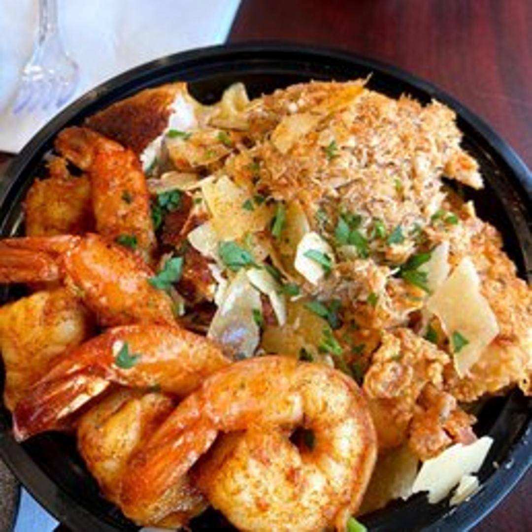 Crispy, golden-fried chicken breast served atop a bed of creamy, homemade Alfredo pasta. A delicious fusion of comfort food favorites.