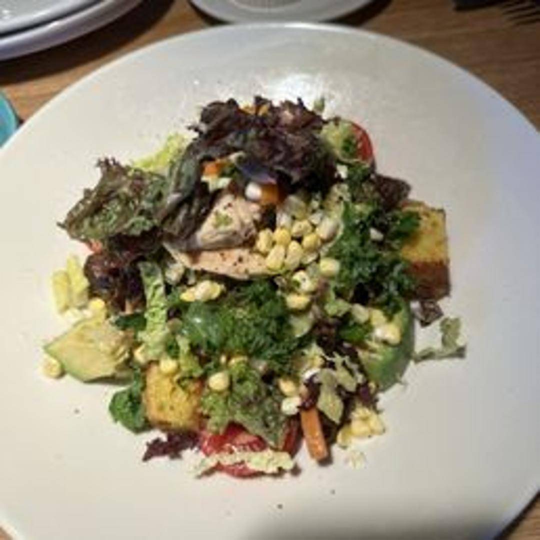 A hearty and flavorful salad featuring a variety of fresh greens, vegetables, and proteins, tossed in a signature dressing.