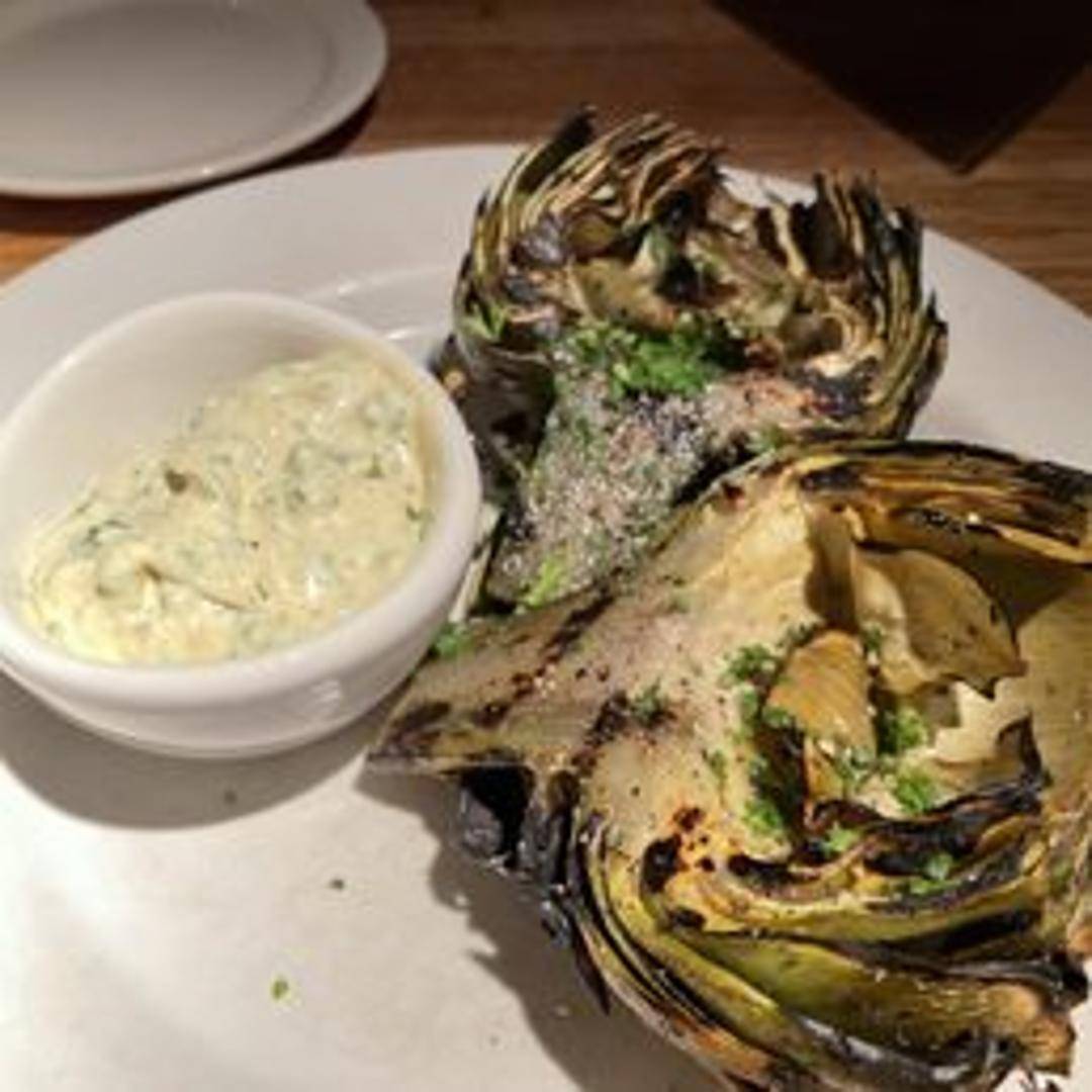 A whole artichoke, grilled to perfection and served with a tangy dipping sauce.