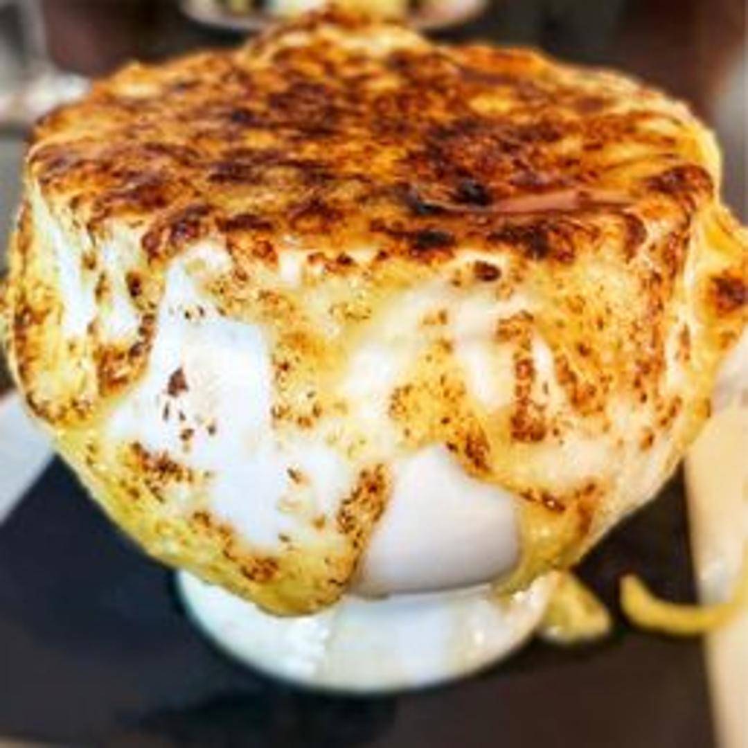 Classic French onion soup, featuring deeply caramelized onions in a rich beef broth, topped with a crusty baguette and melted [specify cheese, e.g., Gruyere or Emmental] cheese. Warm, comforting, and intensely flavorful.