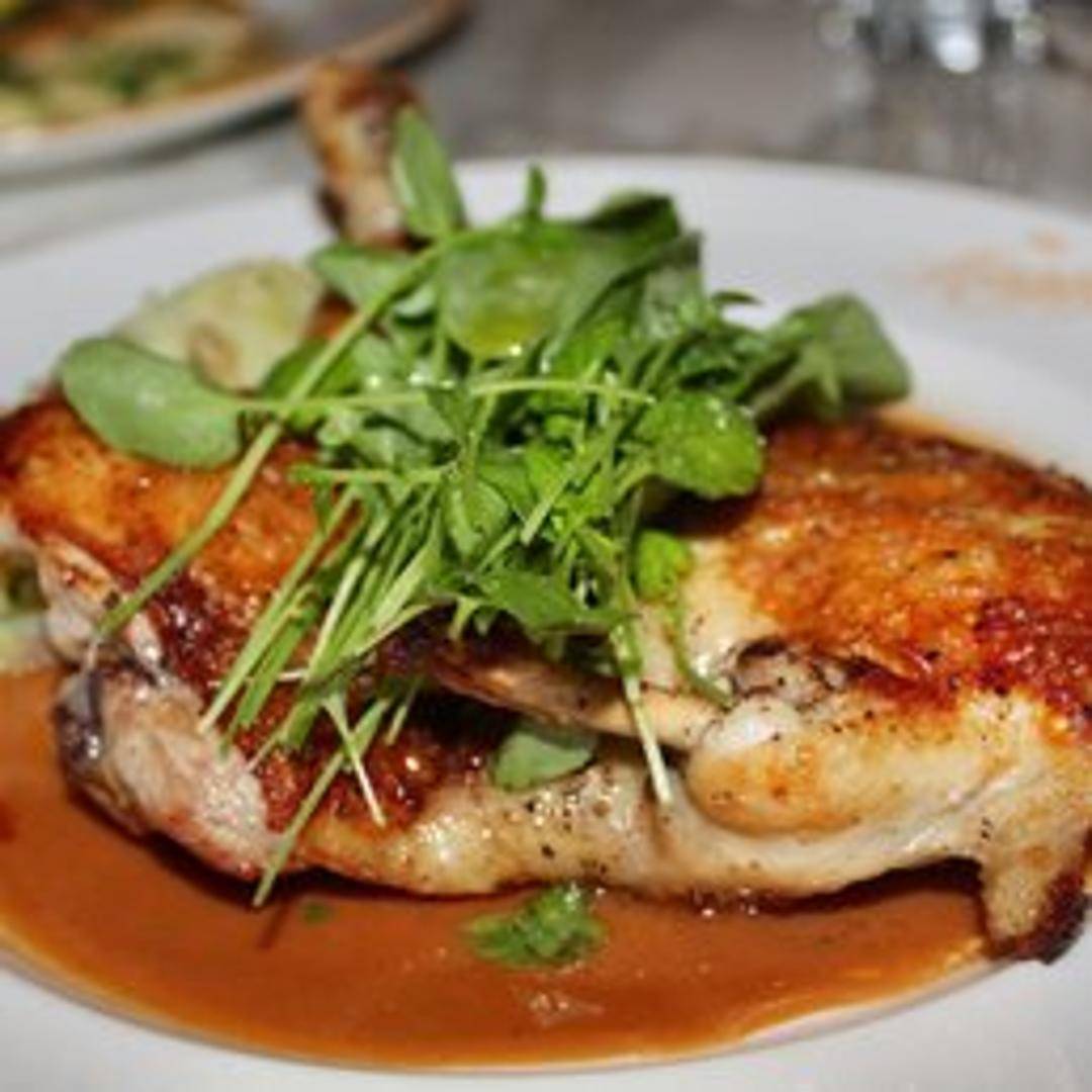 Half of a chicken, roasted to golden perfection, seasoned with herbs, and served with pan juices.