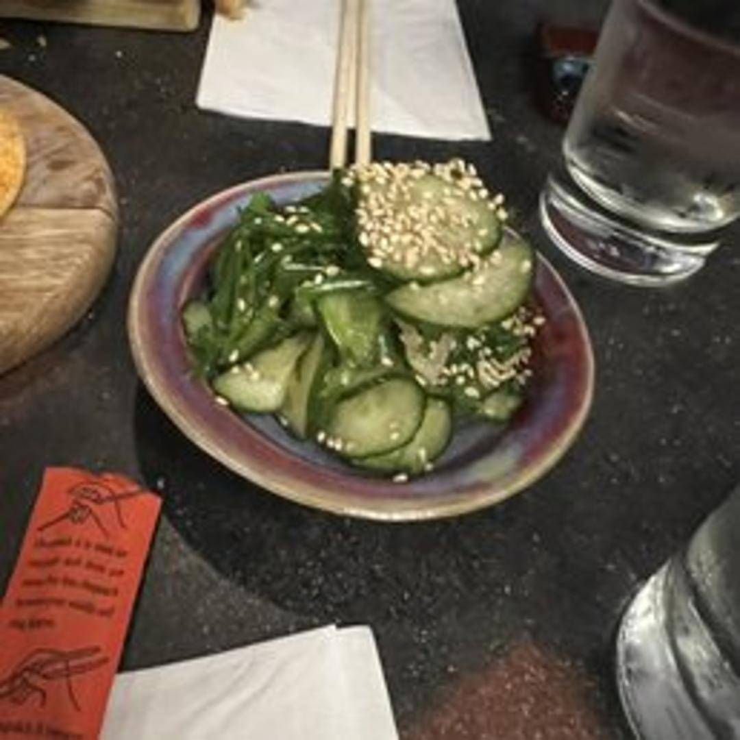 Refreshing and tangy pickled cucumbers, offering a light and palate-cleansing side dish.