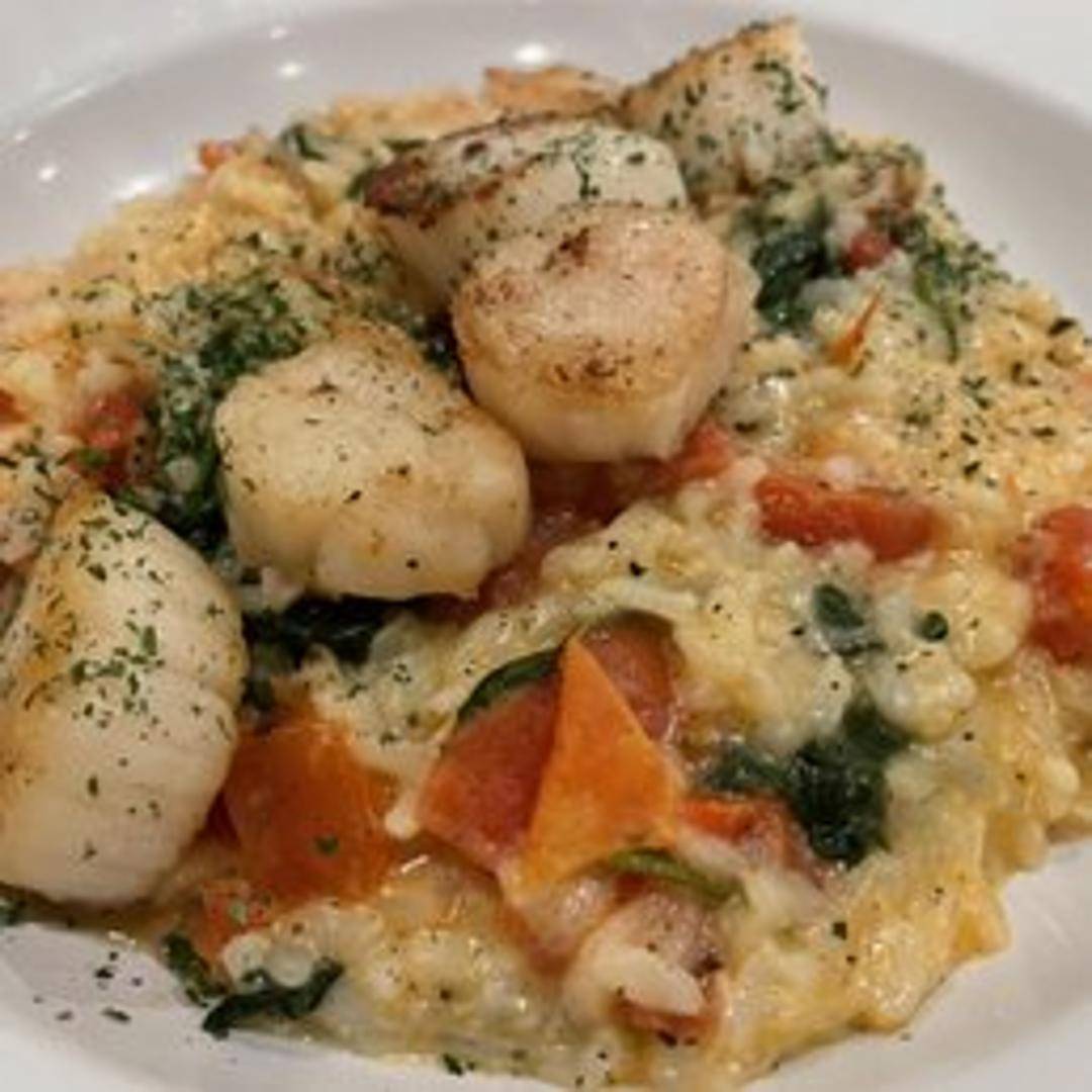Creamy Arborio rice simmered in seafood broth with pan-seared scallops, fresh herbs, and a touch of lemon. Garnished with shaved parmesan and microgreens.