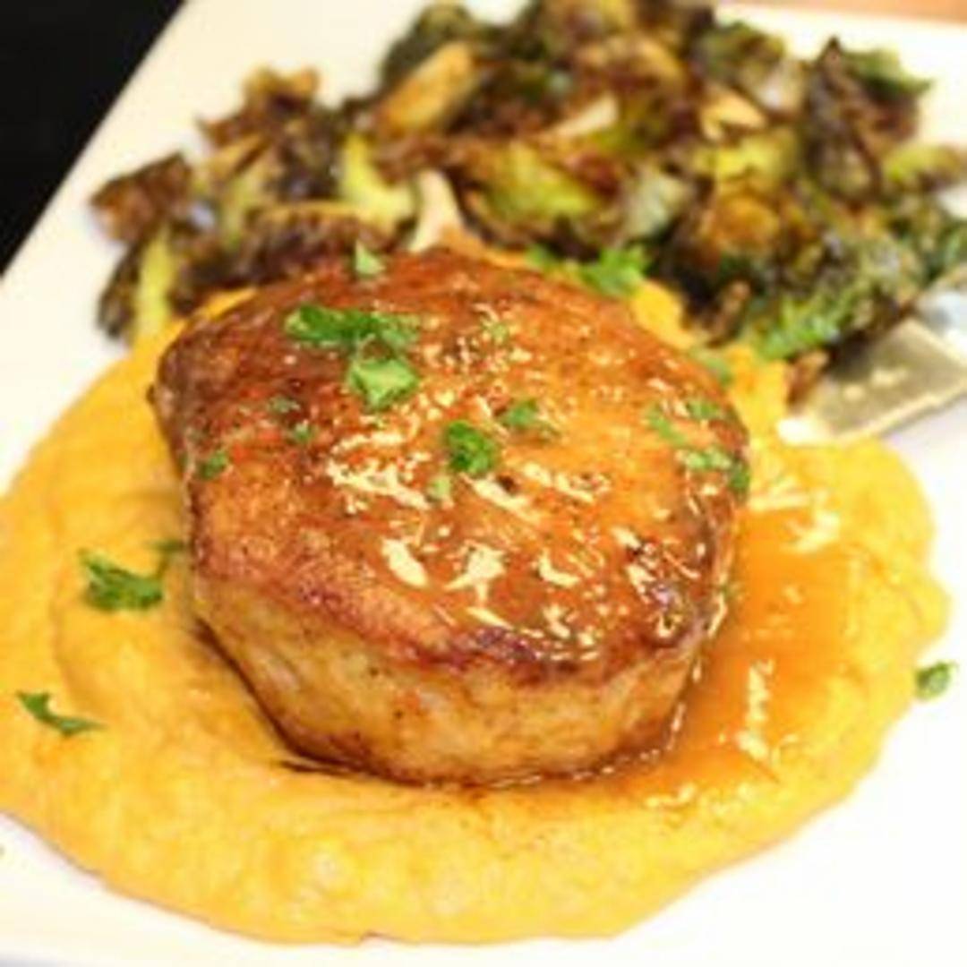 Juicy bone-in pork chop, grilled to perfection and seasoned with a savory blend of spices. Served with your choice of two sides.