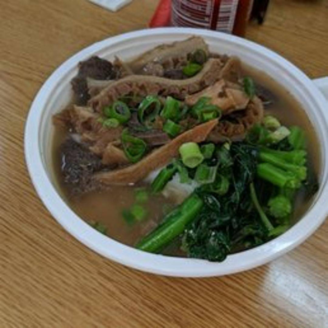 A robust and savory noodle soup featuring tender, braised beef tripe. This traditional dish comes with a rich, deeply flavored beef broth simmered to perfection, served over springy noodles. The star of the bowl is the thinly sliced beef tripe, stewed until incredibly tender and flavorful, offering a unique, satisfying texture. Often complemented with crisp vegetables and aromatic herbs, it's a hearty and authentic culinary experience.