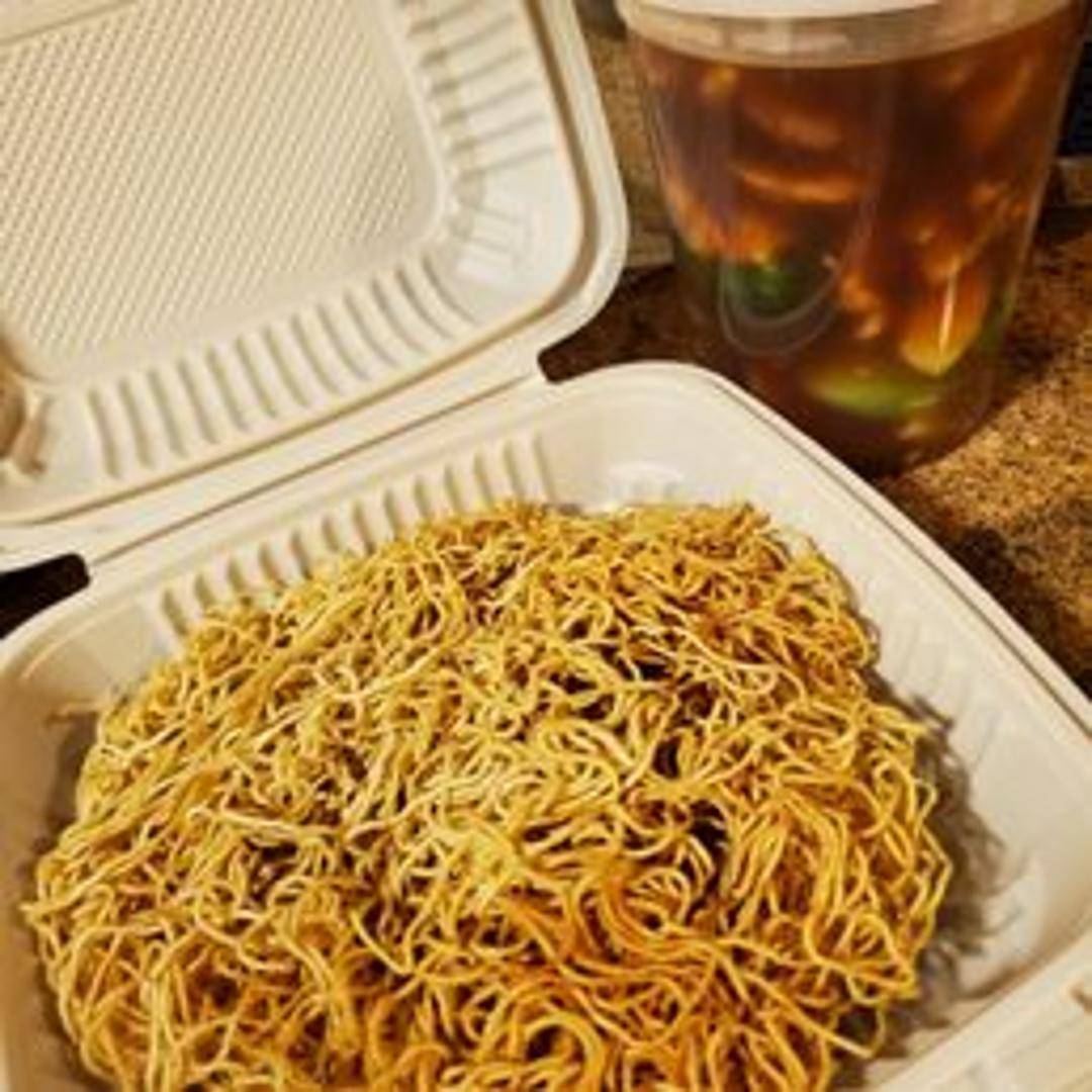 Thin egg noodles stir-fried with a savory sauce, typically containing soy sauce, oyster sauce, and sesame oil. Often includes a mix of vegetables such as bean sprouts, scallions, and bok choy, along with your choice of protein (chicken, pork, beef, shrimp, or tofu).