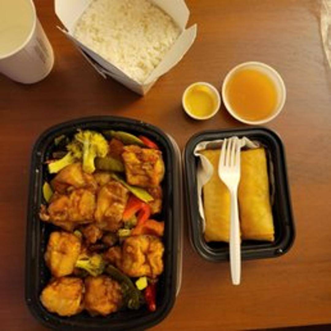 Crispy, golden-brown spring rolls filled with a savory mixture of shredded cabbage, carrots, celery, and other vegetables. Served with a side of sweet chili sauce for dipping.