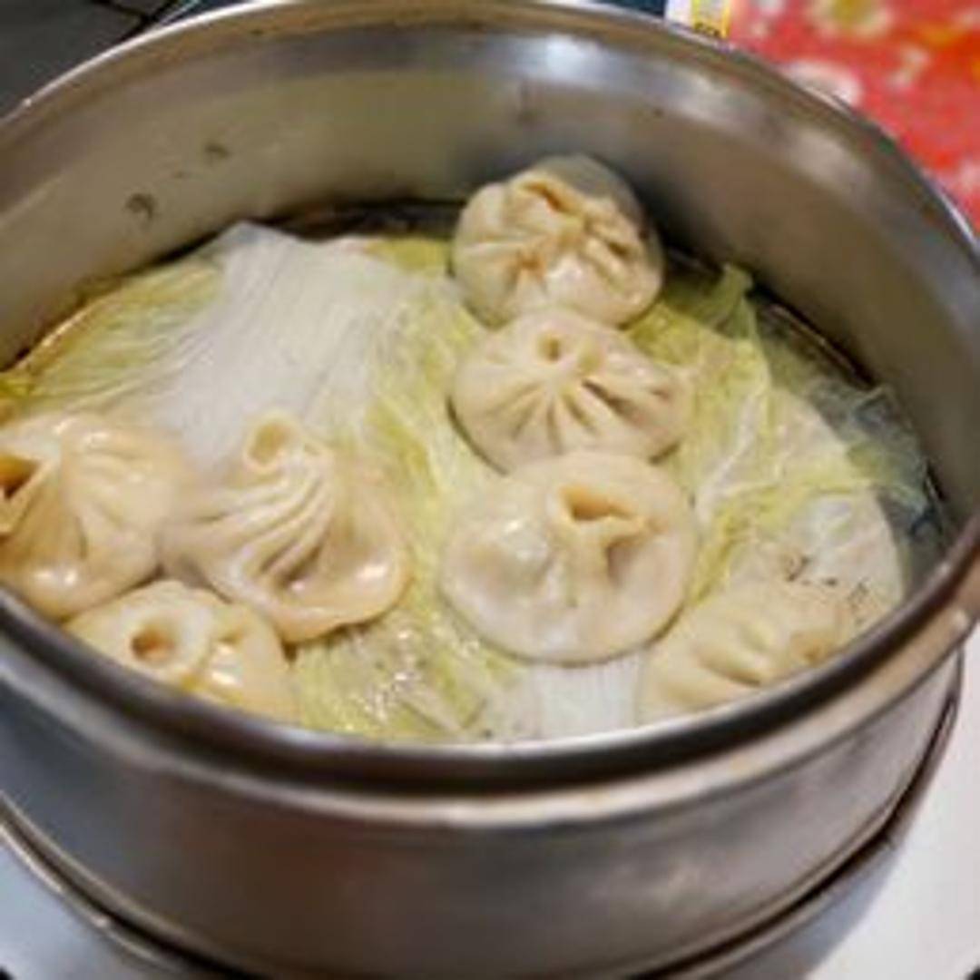 Delicately pleated dumplings, steamed to perfection, encasing a juicy and flavorful filling of seasoned ground pork and finely chopped vegetables. Served with a side of soy-ginger dipping sauce.