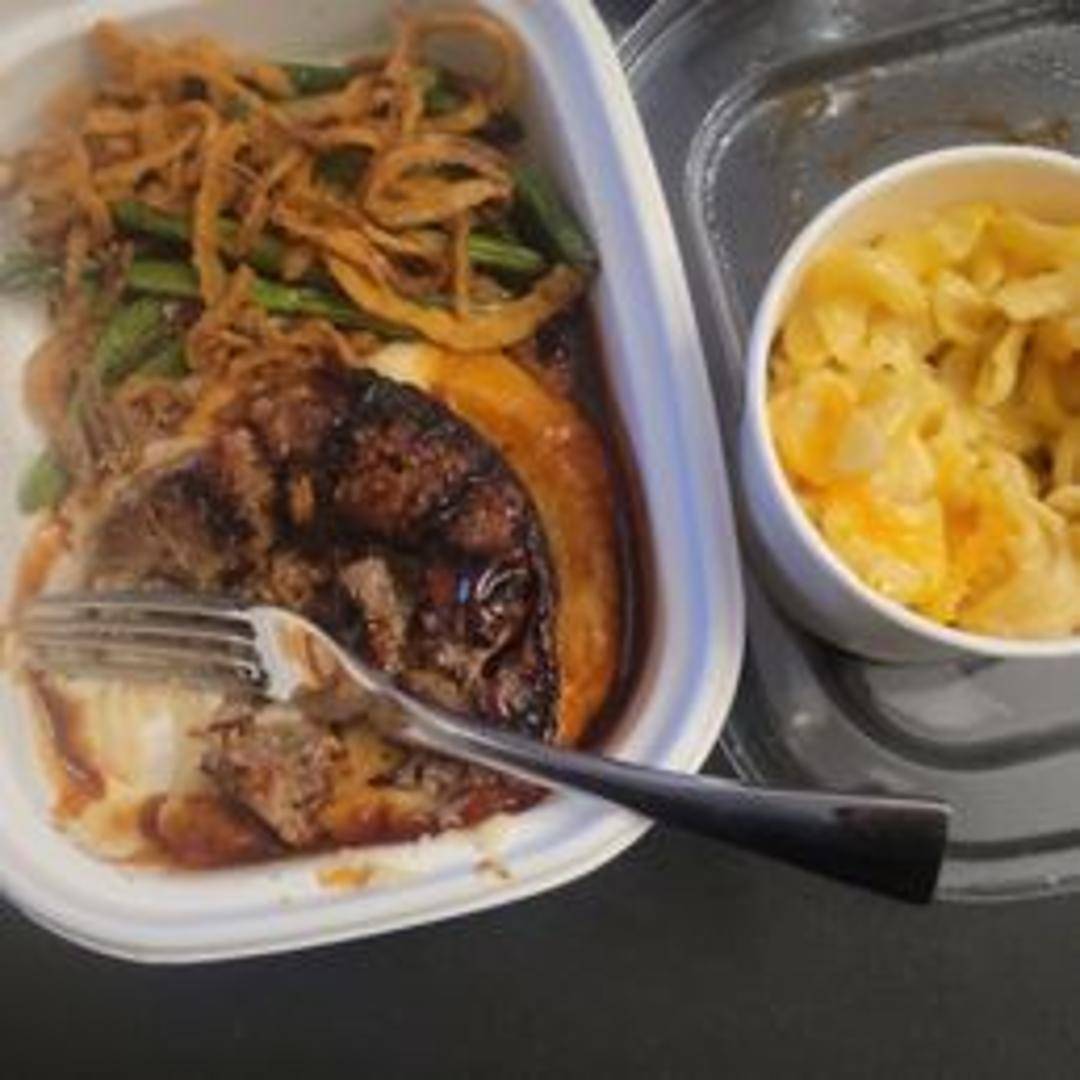 A hearty and flavorful meatloaf wrapped in crispy bacon and grilled to perfection. Served with your choice of side.