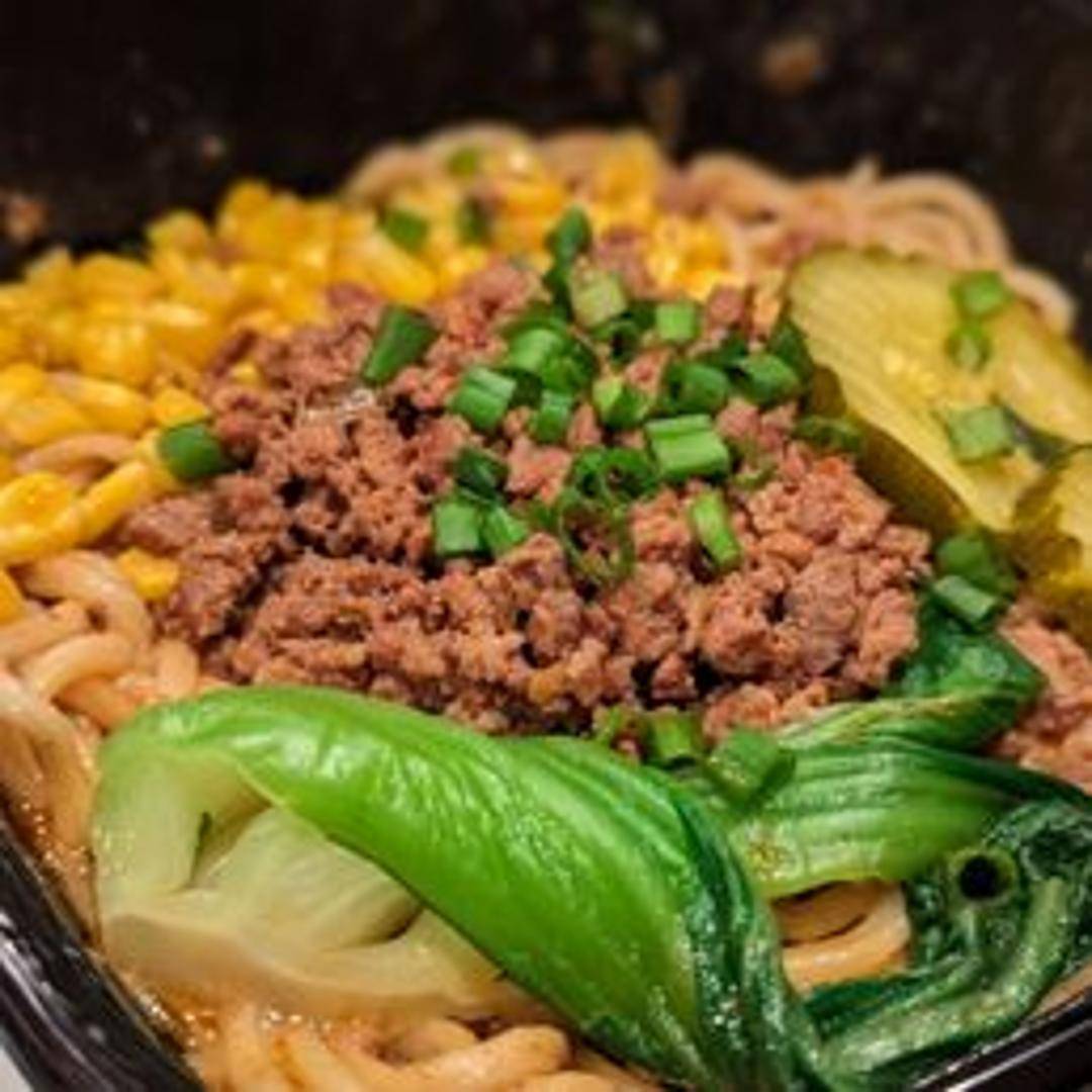 Spicy and savory noodles with a rich sauce, ground pork, and preserved vegetables.