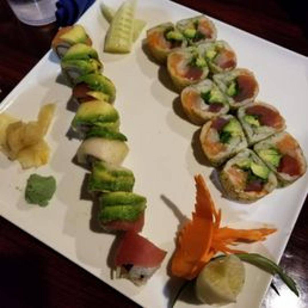 A stunning visual and culinary delight, this roll typically begins with a California roll base, artfully topped with an array of thinly sliced, pristine fresh fish such as tuna, salmon, yellowtail, and sometimes avocado, creating a beautiful 'rainbow' spectrum of flavors and colors.