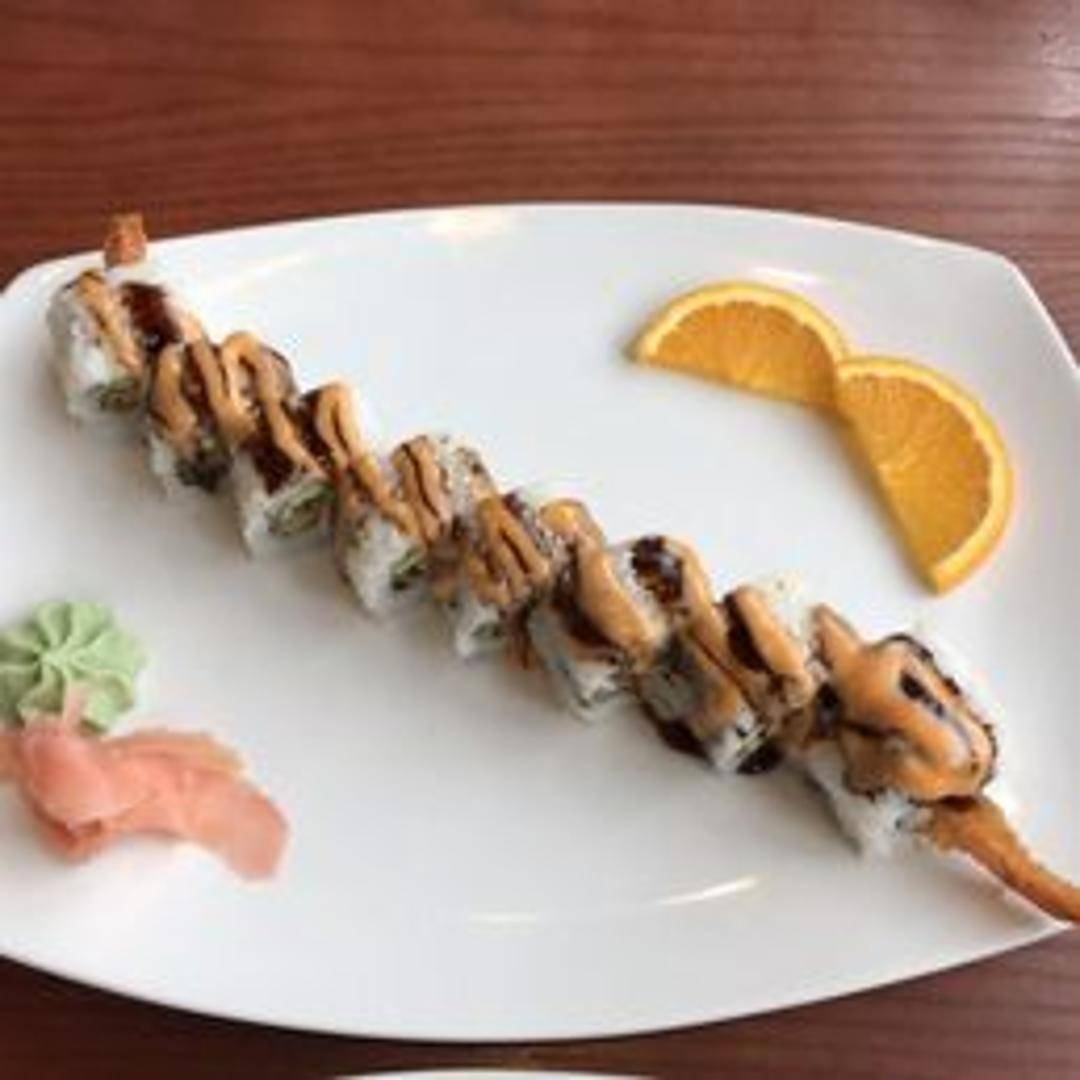 A delicious sushi roll featuring crispy fried shrimp tempura, often combined with avocado, cucumber, and a flavorful sauce like eel sauce or spicy mayo. Served with sushi rice and nori seaweed.
