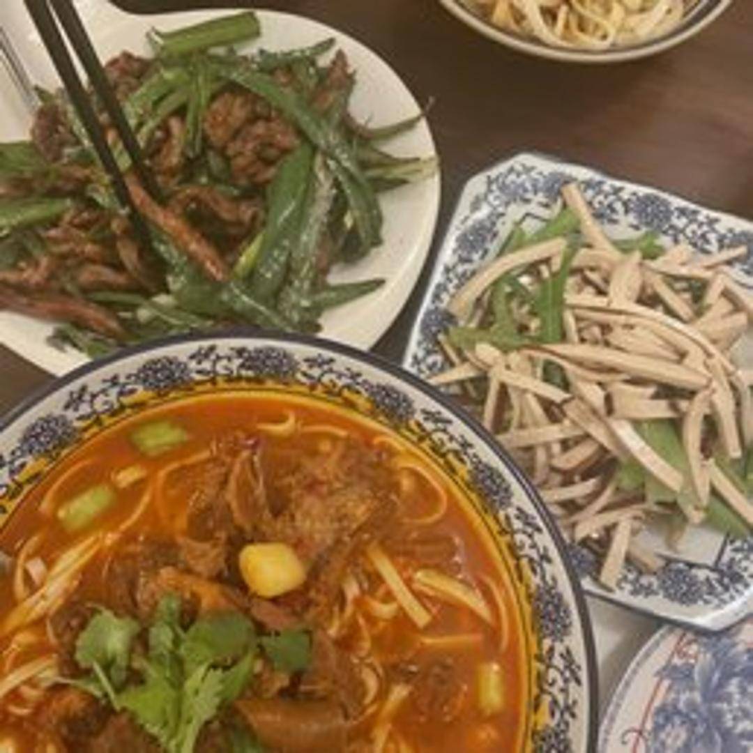 A flavorful and aromatic beef broth simmered with tender slices of beef, wheat noodles, and preserved Sichuan vegetables. Often includes chili oil and Sichuan peppercorns for a spicy and numbing kick. Garnished with cilantro and scallions.