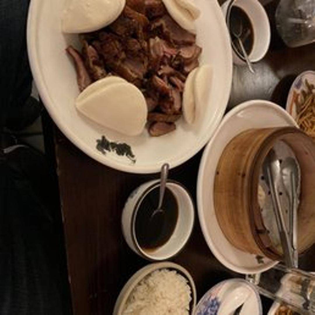 Duck marinated with spices and then smoked with tea leaves, imparting a distinctive smoky flavor and aroma. The skin is typically crisp and deeply colored, while the meat remains juicy and flavorful. Served sliced, showcasing the rich, smoky taste and tender texture.