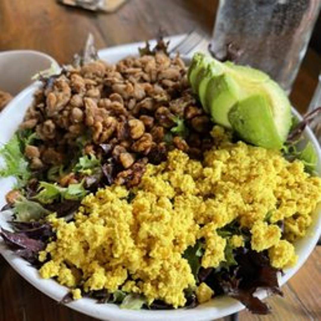 Smoked and seasoned tempeh strips, perfect as a side or add-on to any dish.