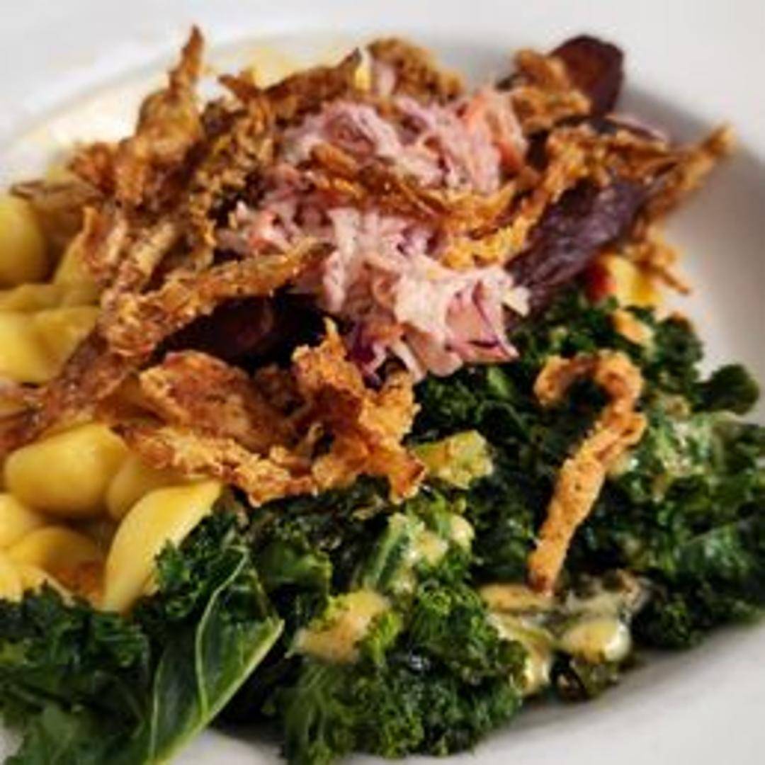 Tender seitan in a smoky BBQ sauce served over rice or quinoa with your choice of sides.