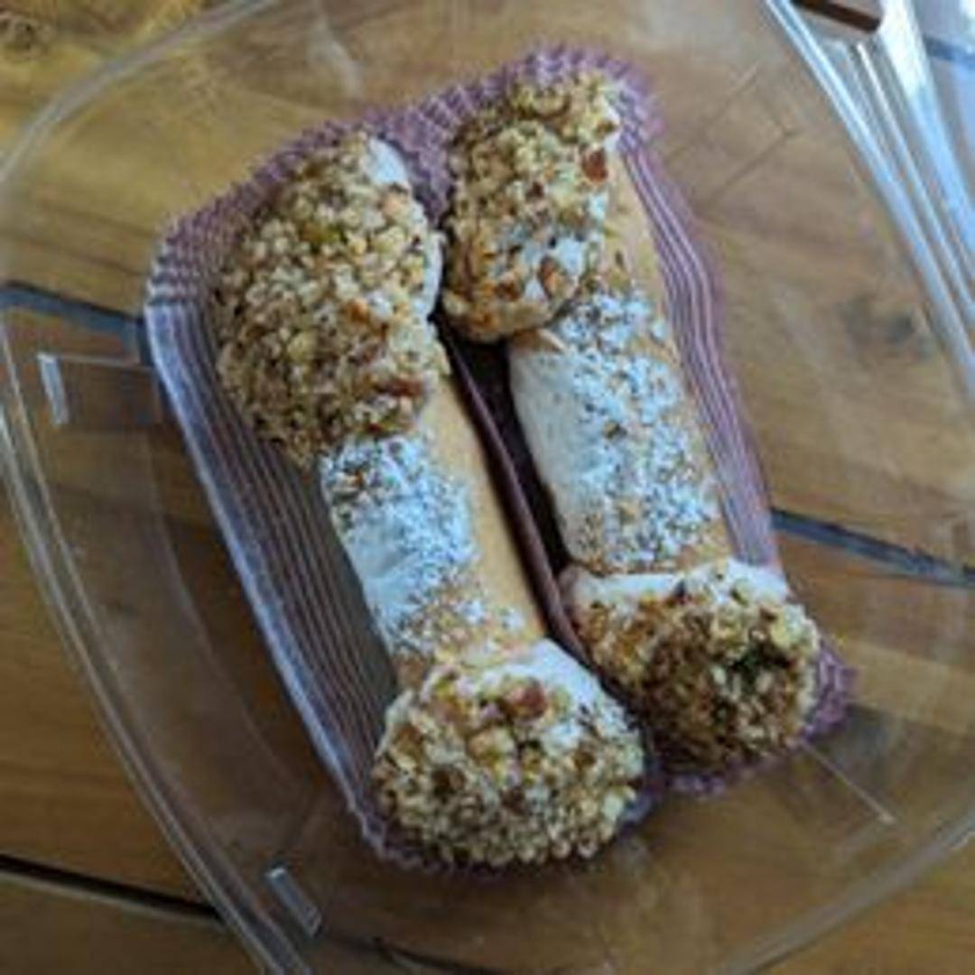 Crispy, fried pastry shells filled with a sweet, creamy ricotta filling. Often dusted with powdered sugar and sometimes garnished with chocolate chips or candied fruit.