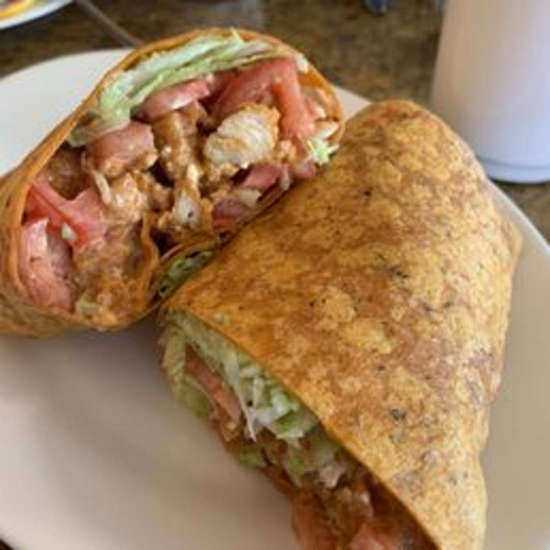 Crispy or grilled chicken tossed in buffalo sauce, shredded lettuce, diced tomatoes, and blue cheese dressing wrapped in a warm flour tortilla. Served with a side of carrots and celery sticks and a side of ranch or blue cheese dressing for dipping.