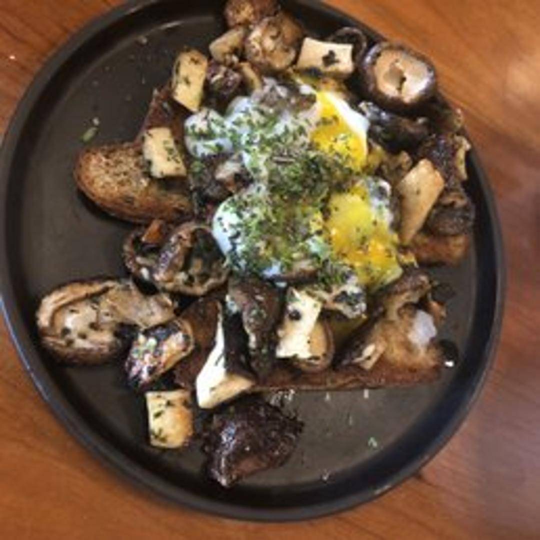 A sophisticated take on a classic, featuring an assortment of wild and cultivated mushrooms expertly sautéed with aromatic herbs and garlic, piled high on a slice of perfectly toasted artisanal bread. Finished with a delicate drizzle of truffle oil and a sprinkle of fresh chives, offering an earthy and comforting appetizer or light meal.
