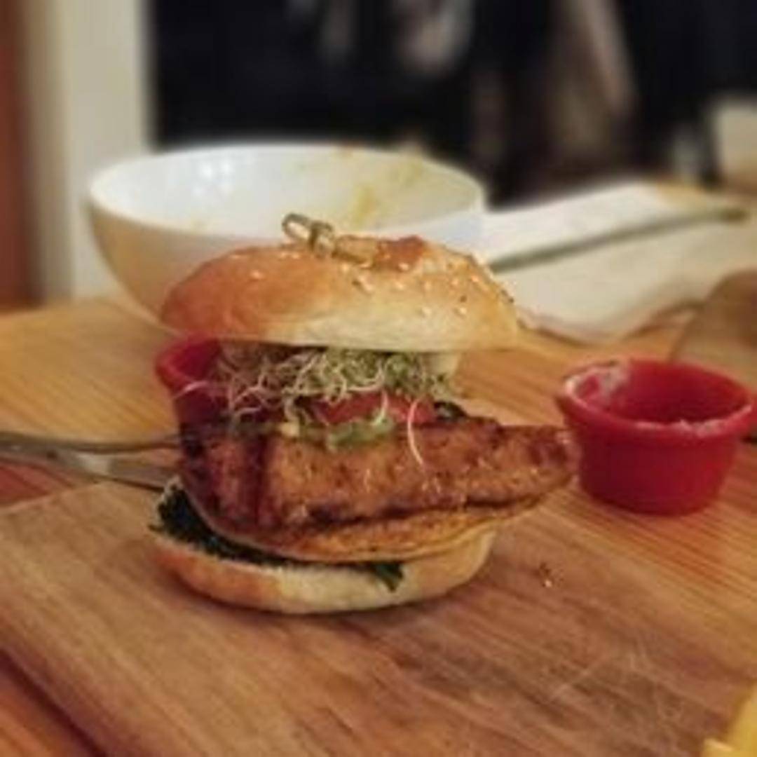 A classic breakfast staple, reimagined and made entirely vegan. Enjoy a fluffy plant-based 'egg' patty, savory vegan breakfast sausage, and a slice of melted vegan cheddar cheese, all nestled between a toasted English muffin or warm brioche-style bun.