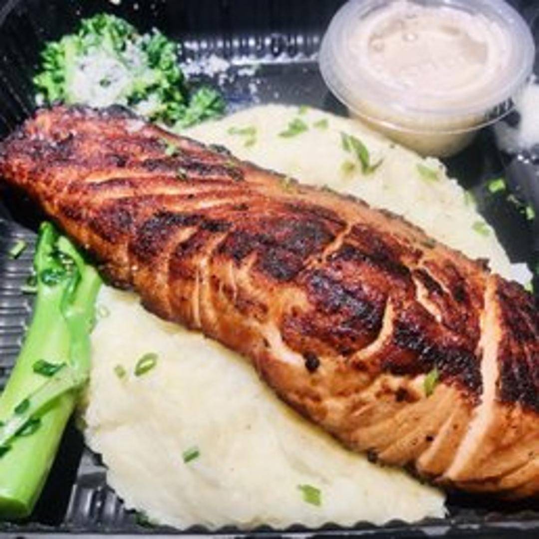 Experience the delicate flavors of our short smoked and perfectly grilled salmon, served atop a vibrant bed of fresh mixed greens. This robust salad is thoughtfully composed with crisp vegetables and often accompanied by a complementary dressing, offering a light yet satisfying meal.