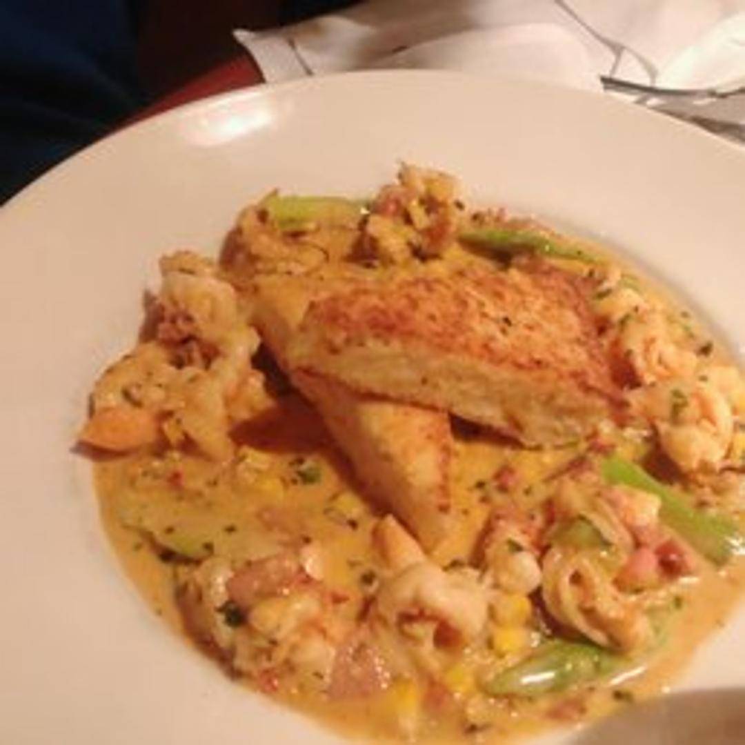 Savor a Southern-inspired delight featuring plump, perfectly sautéed shrimp served alongside golden-fried, impossibly creamy grit cakes. This dish offers a harmonious blend of fresh seafood and comforting, rich textures, embodying a taste of coastal elegance.