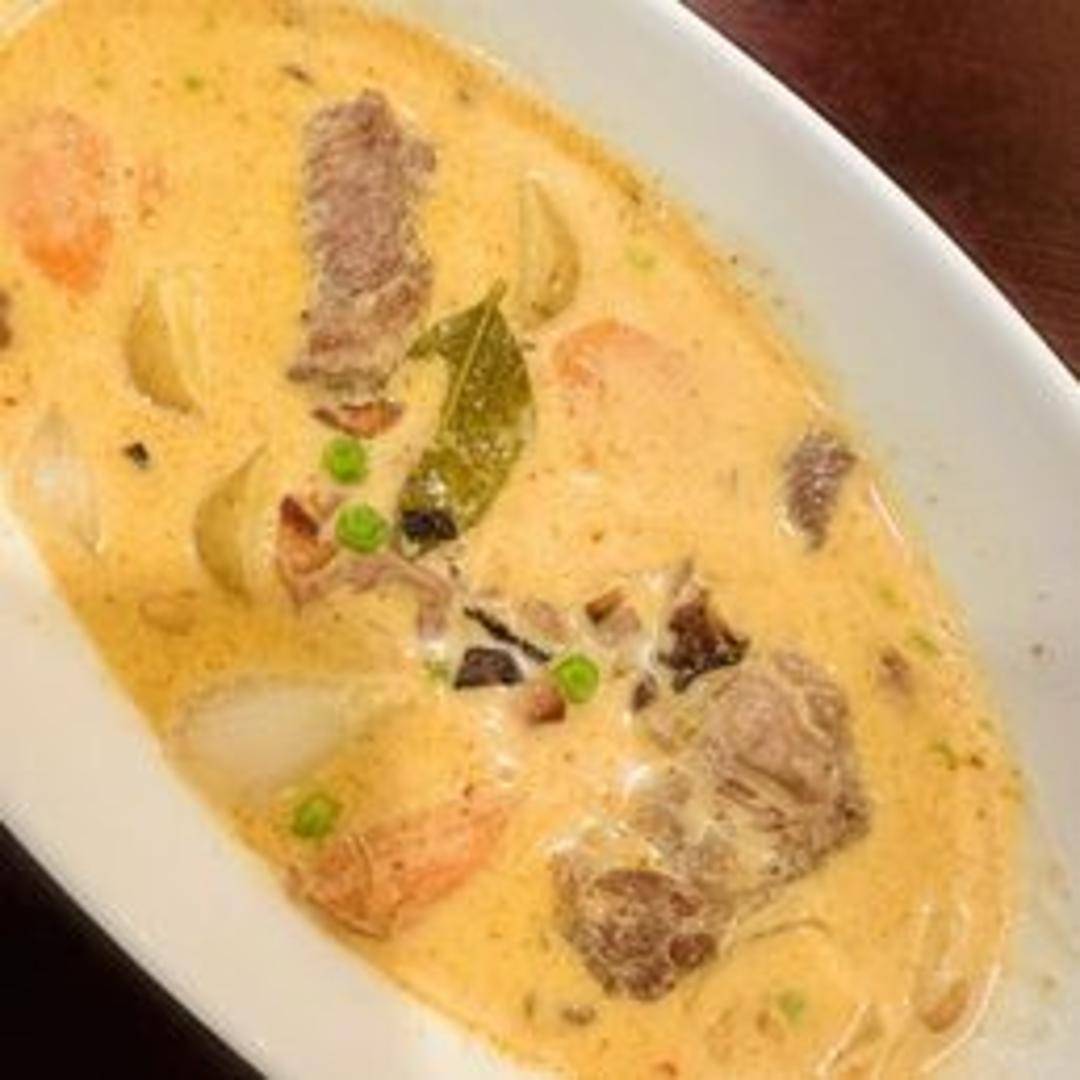 Slow-cooked short ribs in a mild and flavorful Massaman curry, with potatoes, onions, peanuts, and aromatic spices. A rich and comforting curry served with steamed rice.