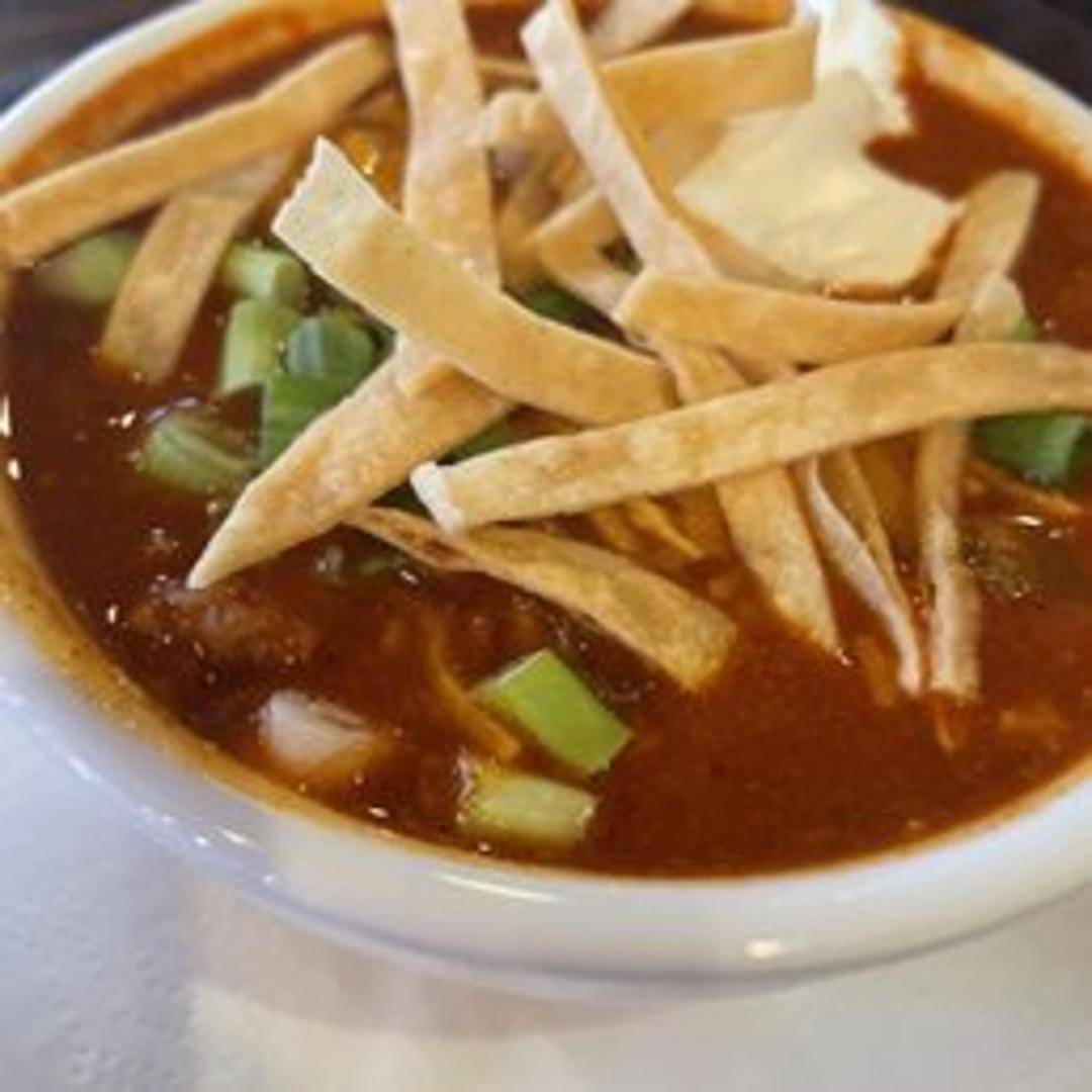 A hearty and flavorful chili made with locally sourced bison meat, simmered with a blend of Southwestern spices, beans, and vegetables. Served with your choice of toppings, such as shredded cheese, sour cream, and green onions.