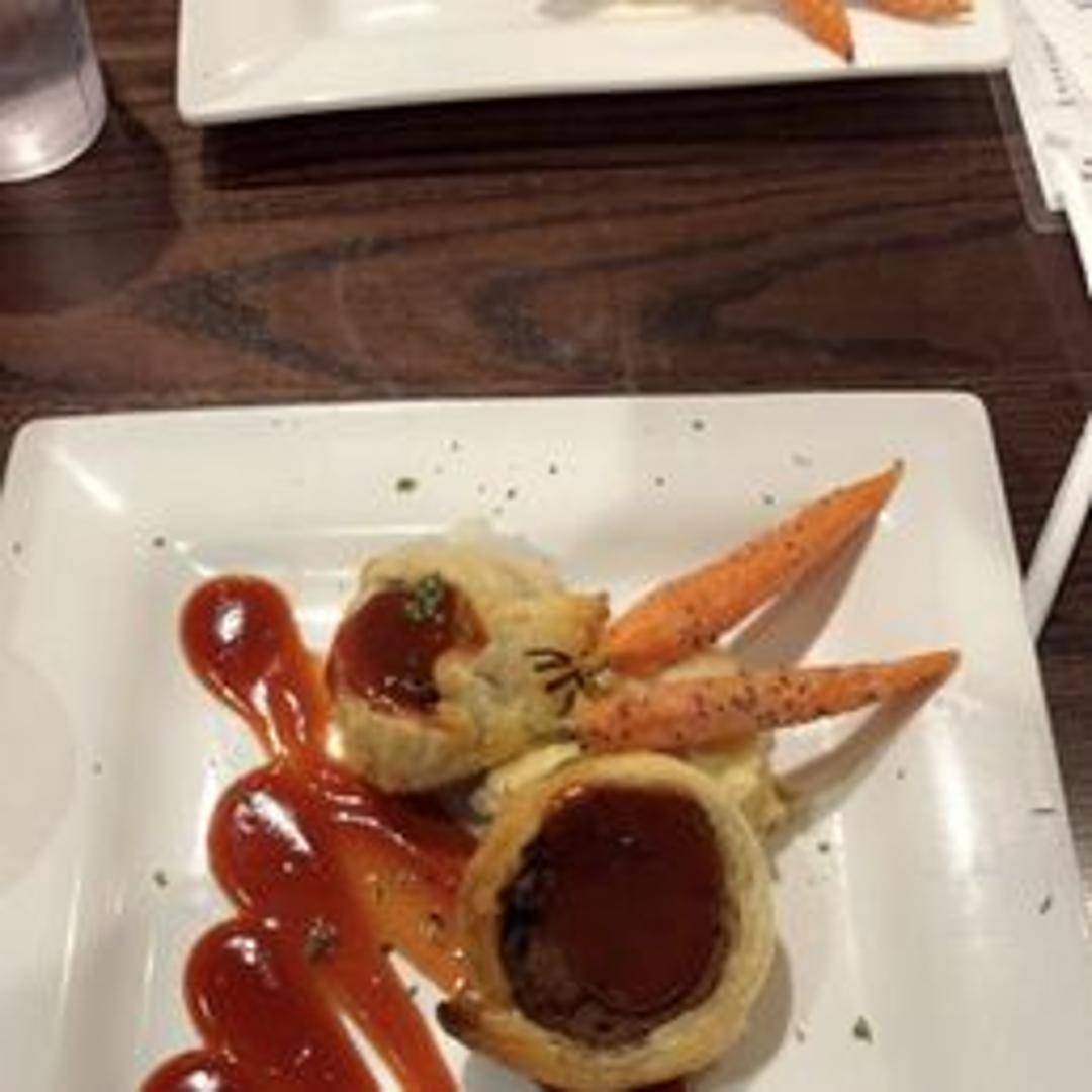 A unique twist on a classic comfort food! Bison meatloaf wrapped in a flaky puff pastry and baked to golden brown perfection. Served with a rich mushroom gravy and your choice of side.