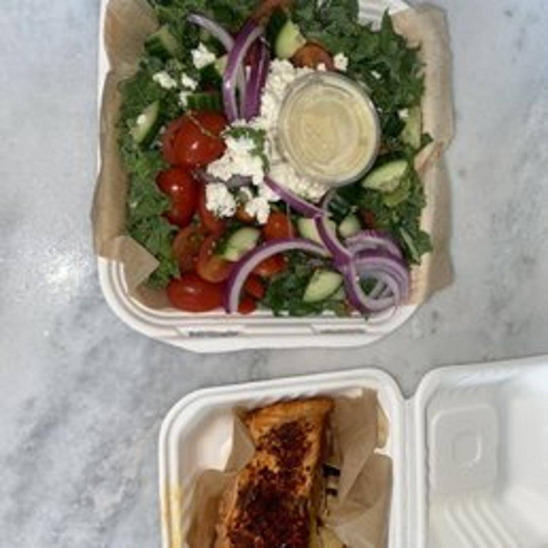 Freshly chopped kale tossed with dried cranberries, toasted almonds, shaved Parmesan cheese, and a lemon vinaigrette.