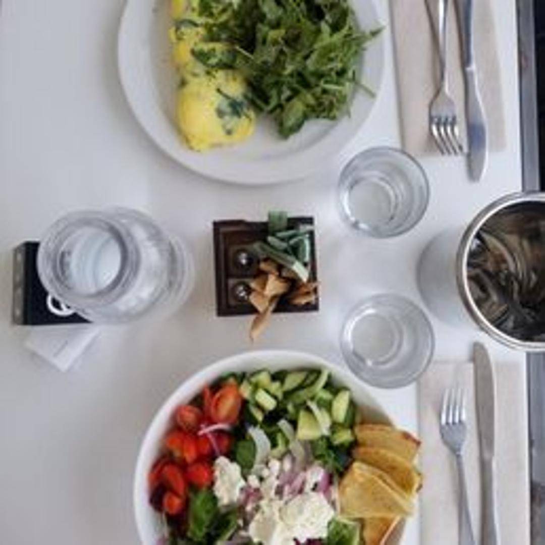 A vibrant and refreshing salad featuring mixed greens, cucumbers, tomatoes, red onion, Kalamata olives, feta cheese, and a light vinaigrette dressing. A healthy and flavorful option.