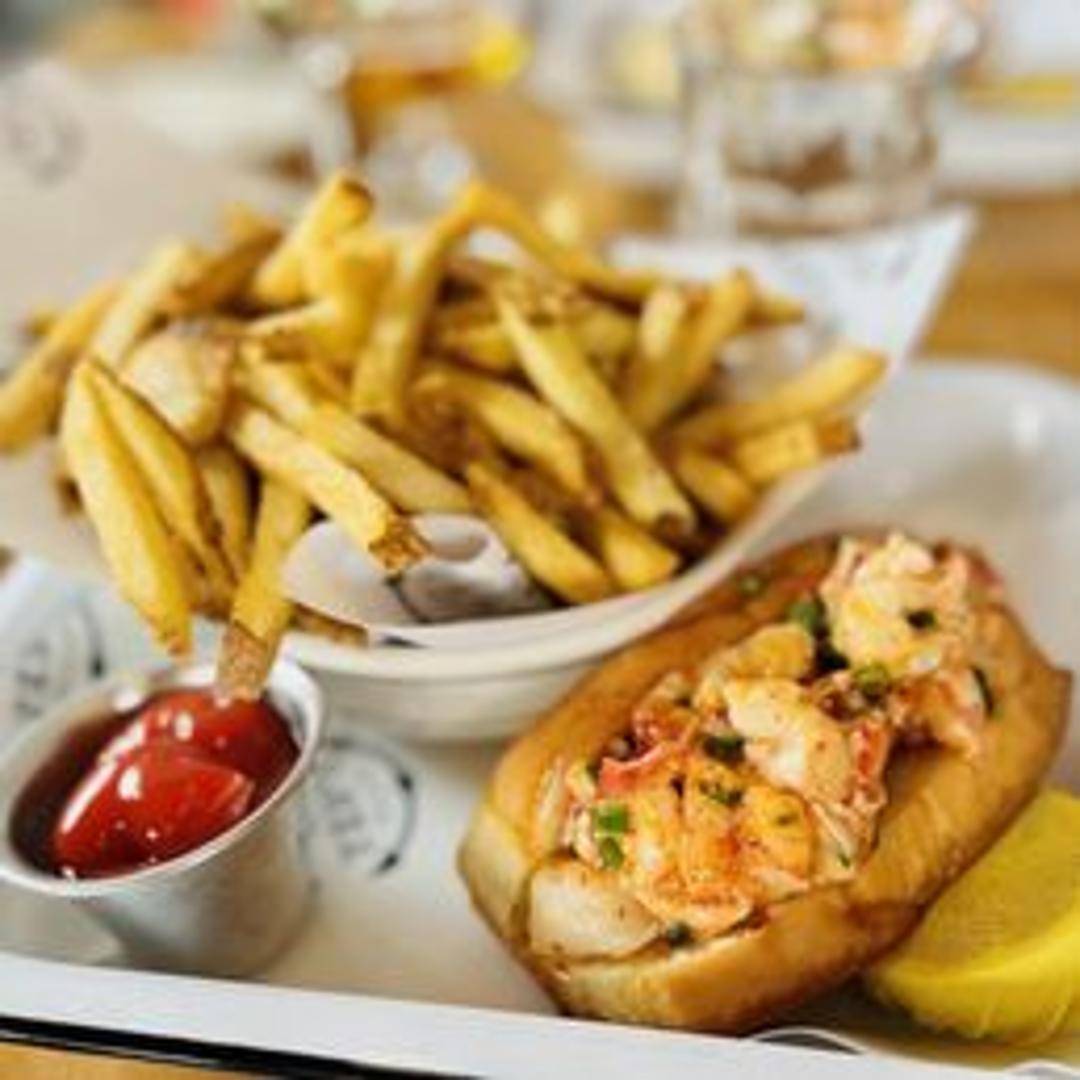 A generous portion of fresh, succulent lobster meat, lightly dressed with mayonnaise and seasonings, served warm on a toasted, buttery roll.