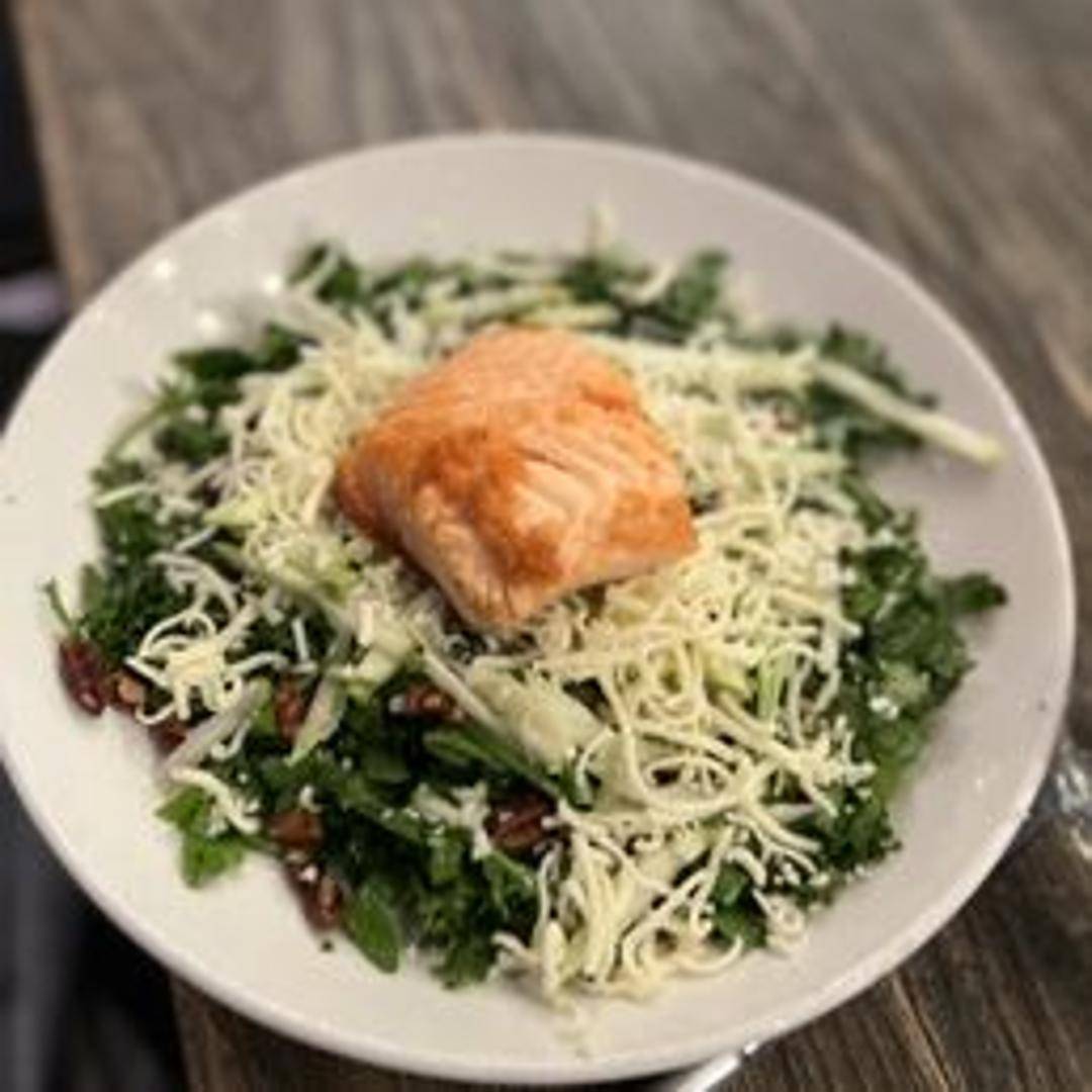 Tender kale massaged with a tangy vinaigrette, mixed with crisp apple slices, dried cranberries, toasted pecans, and crumbled goat cheese.