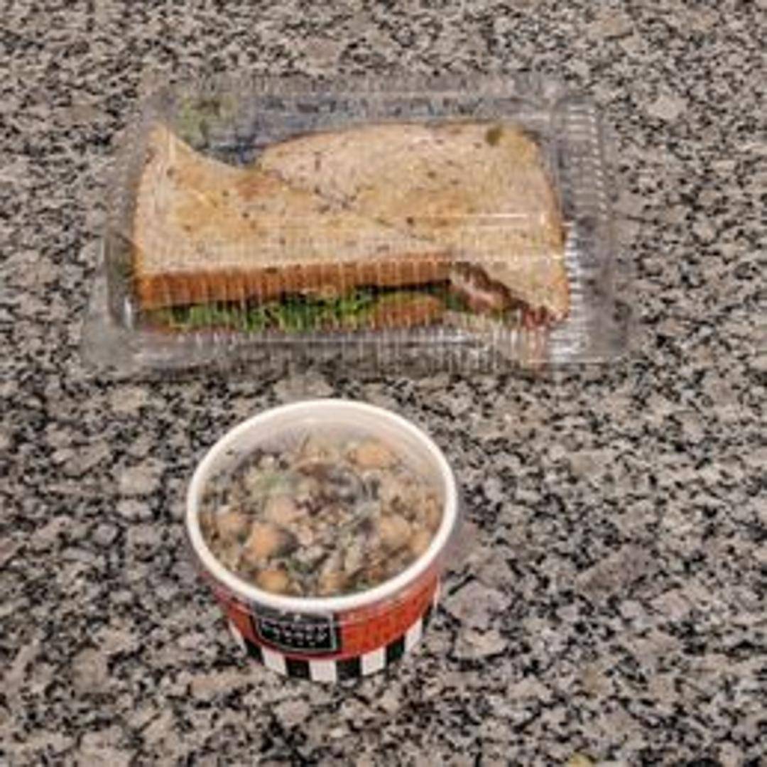 Smoked turkey breast, avocado, lettuce, tomato, and mayonnaise on toasted multigrain bread.