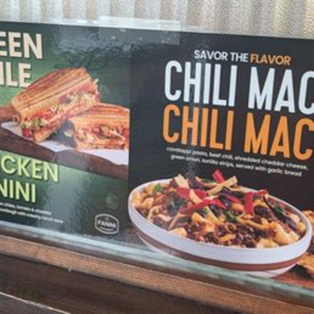 Hearty chili with beef, beans, onions, peppers, and spices, topped with cheddar cheese and sour cream.