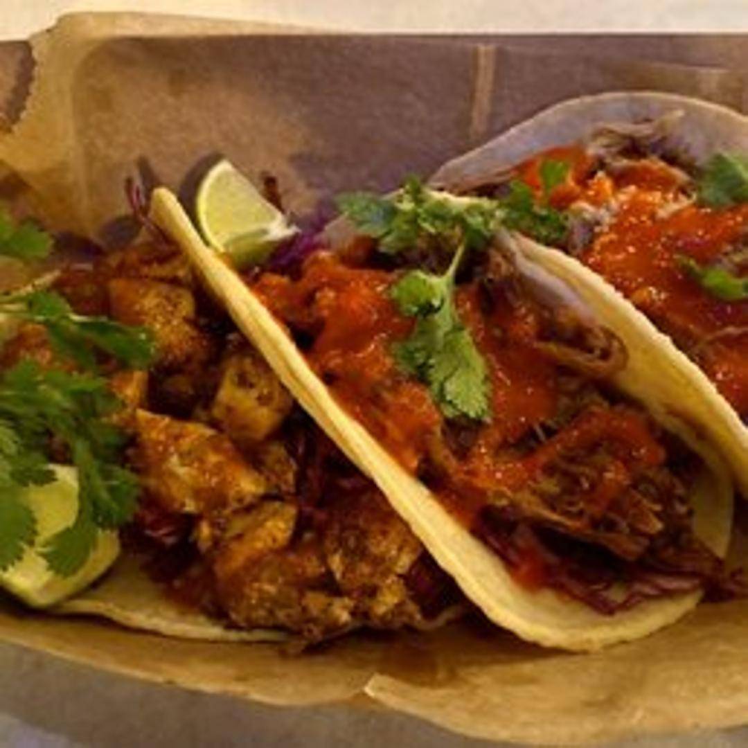 Slow-cooked, shredded pork, often braised until tender and then crisped up. Served in a warm tortilla with traditional toppings such as diced onions, cilantro, and a squeeze of lime.