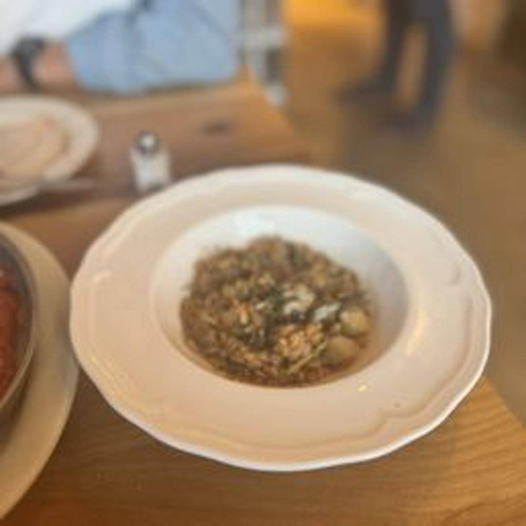 Creamy and comforting risotto made with farro grains, cooked with vegetables, cheese, and herbs. A hearty and flavorful vegetarian option.