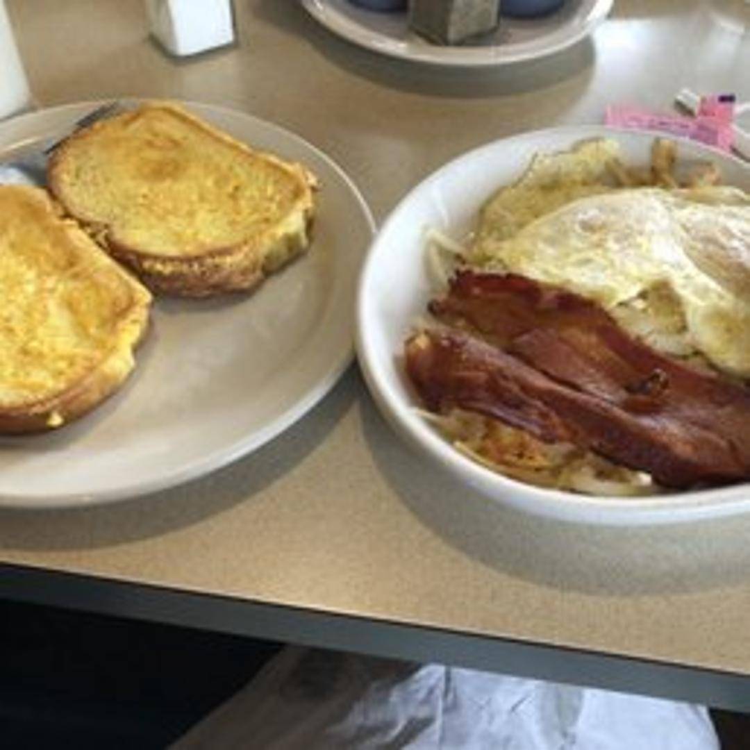 Thick slices of Texas toast dipped in a sweet batter and grilled to golden perfection. Sprinkled with powdered sugar and served with your choice of syrup.