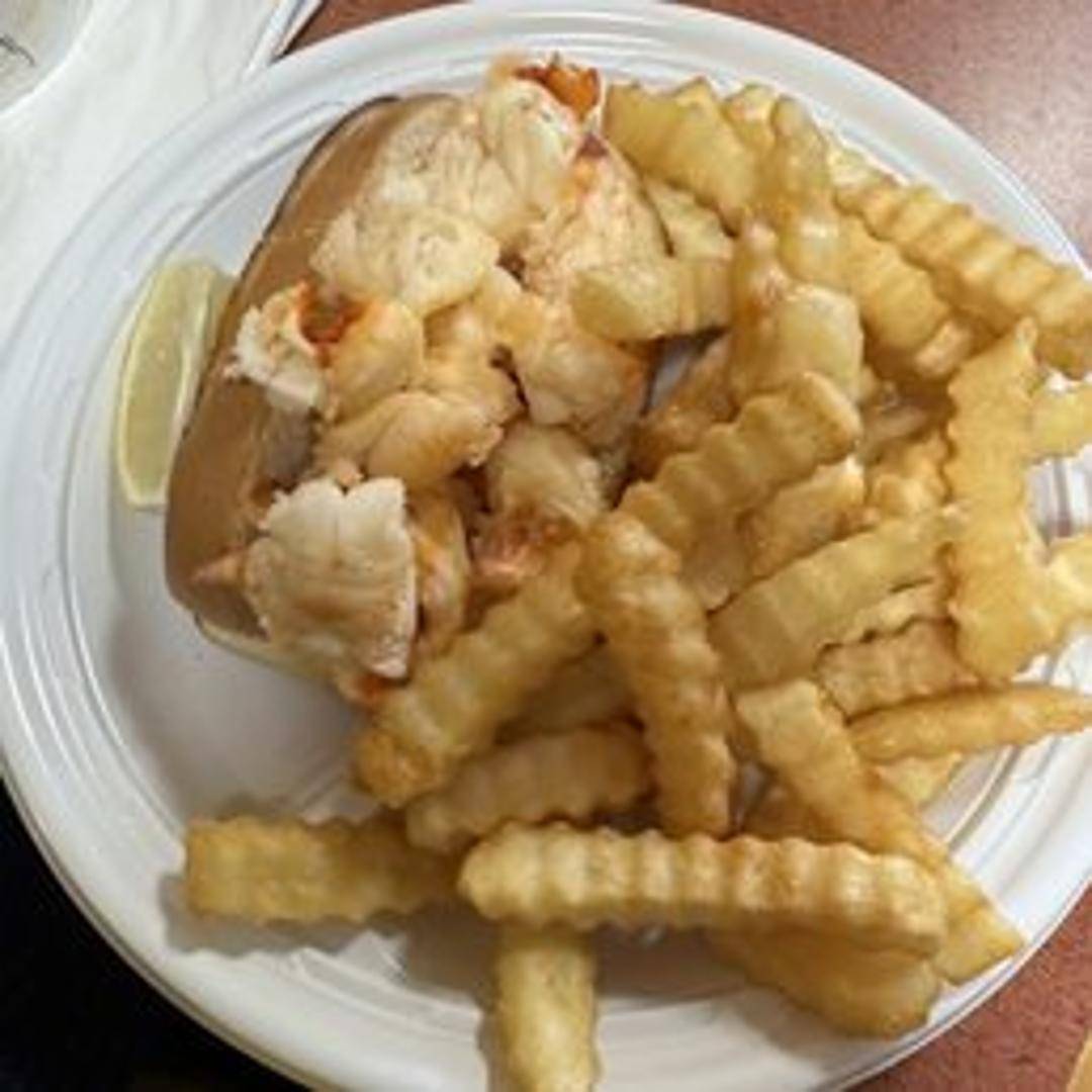 Fresh, succulent lobster meat lightly tossed in mayonnaise, served on a toasted, buttered roll. Often includes a touch of celery for added texture and flavor. A classic New England seafood treat.
