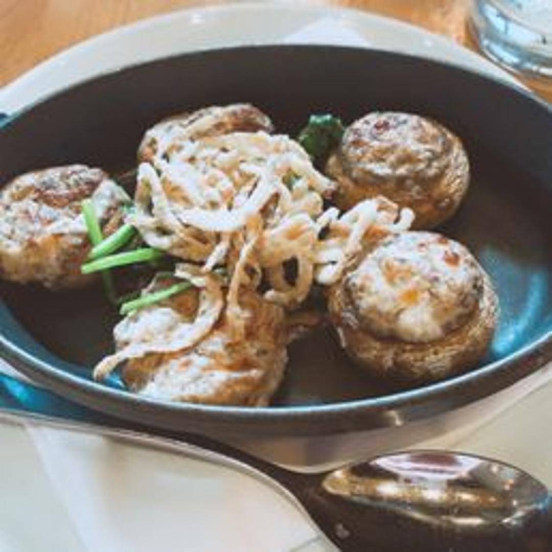 Large mushroom caps filled with a savory blend of breadcrumbs, herbs, garlic, and cheese. Baked until golden brown and served hot.