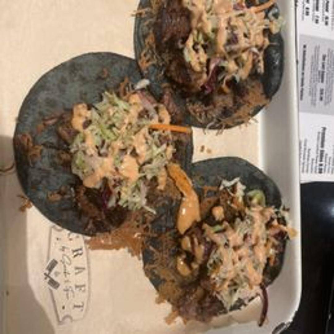 Slow-smoked brisket served in warm corn tortillas with your choice of toppings, such as cilantro, onion, and salsa.