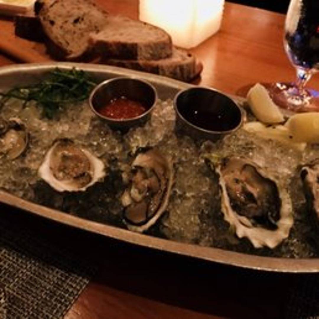 Freshly shucked, premium oysters, presented on a bed of crushed ice. Each succulent oyster offers a clean, briny taste of the ocean, typically served with classic accompaniments such as a delicate mignonette, fresh lemon wedges, and vibrant cocktail sauce to enhance their natural flavor.