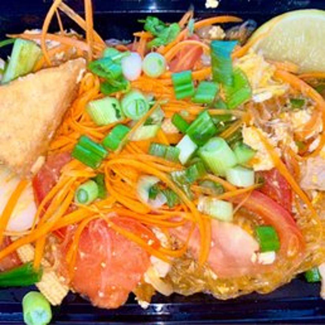Experience the delicate and savory flavors of Pad Woon Sen, a classic Thai stir-fry featuring translucent glass noodles. This comforting dish typically combines the bouncy texture of bean thread noodles with a vibrant medley of fresh vegetables such as carrots, cabbage, mushrooms, and onions, often stir-fried with your choice of protein (like chicken, pork, beef, or tofu) and egg. It's tossed in a light, savory sauce, often a blend of soy sauce, oyster sauce, and a touch of sugar, creating a harmonious balance of sweet and savory notes without being overly spicy. A delightful choice for those seeking a lighter noodle dish with a rich depth of flavor and appealing textures.