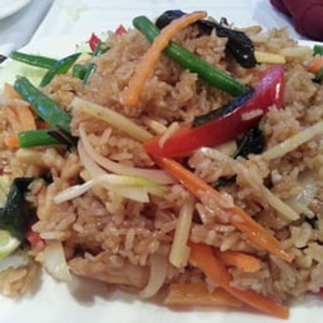 A fragrant and spicy fried rice dish, wok-tossed with your choice of protein, fresh garlic, vibrant Thai basil leaves, and fiery bird's eye chilies. This beloved dish is seasoned with a savory sauce, resulting in a delightfully aromatic and satisfying meal with a distinctive herbaceous kick.