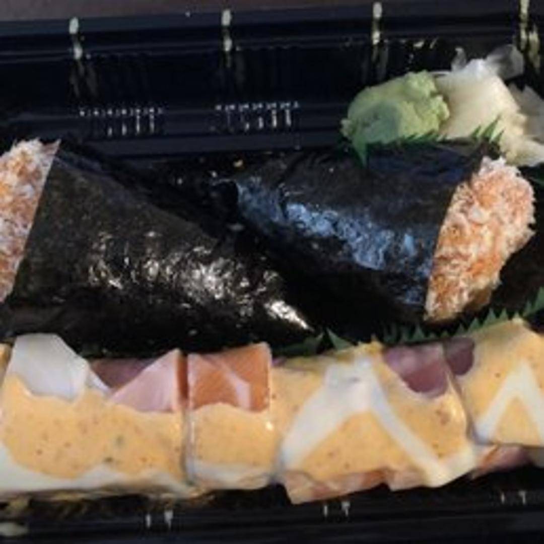 Classic roll filled with fresh salmon and sushi rice, wrapped in nori seaweed.