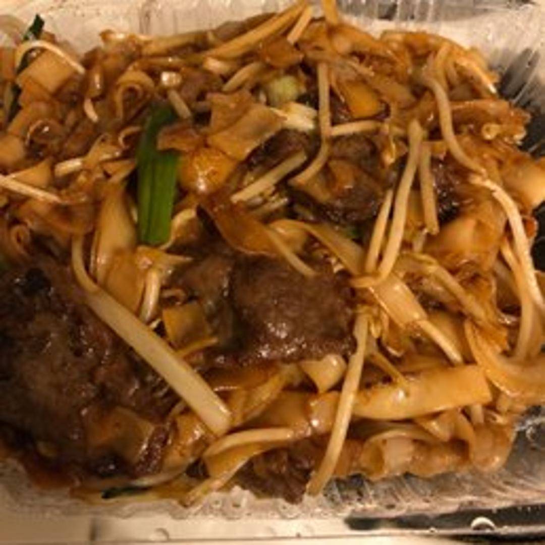 Wide, flat rice noodles stir-fried with tender slices of beef, bean sprouts, scallions, and onions in a savory soy-based sauce. Often has a slightly smoky flavor from being cooked in a hot wok.